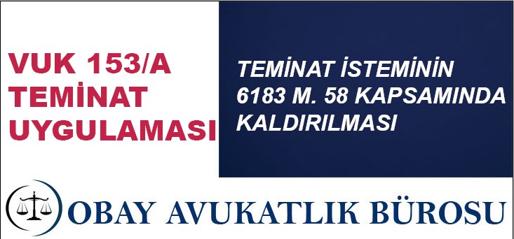 VERGİ USUL KANUNU MADDE 153/A – TEMİNAT UYGULAMASI: